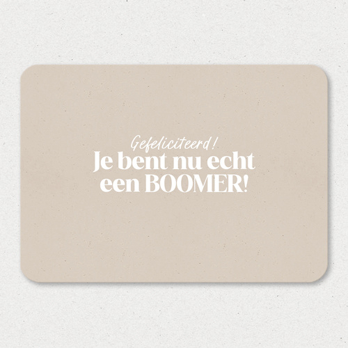 Stuur dit leuke kaartjes aan een jarige die wel tegen een grapje kan! Gefeliciteerd, je bent nu echt een BOOMER!
