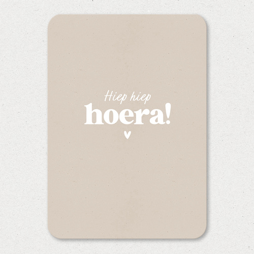 De kaart heeft een lichte kraftpapier print, dit zorgt samen met de ronde hoeken voor een warme uitstraling. De achterkant van de wenskaart is wit, dus goed beschijfbaar.