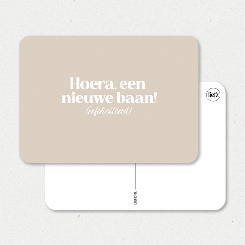 De kaart heeft een lichte kraftpapier print, dit zorgt samen met de ronde hoeken voor een warme uitstraling. De achterkant van de wenskaart is wit, dus goed beschijfbaar.