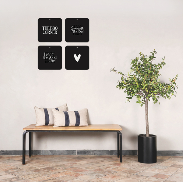 Wat krijg je als je een muurcirkel en een tegeltje met tekst combineert? Voilà, een muurvierkant!