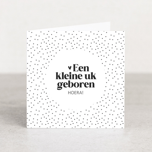 Stuur dit lieve geboortekaartje om de kersverse ouders te feliciteren met de geboorte van hun kleine uk! Deze mooie wenskaart is natuurlijk een feestje om in de bus te krijgen.